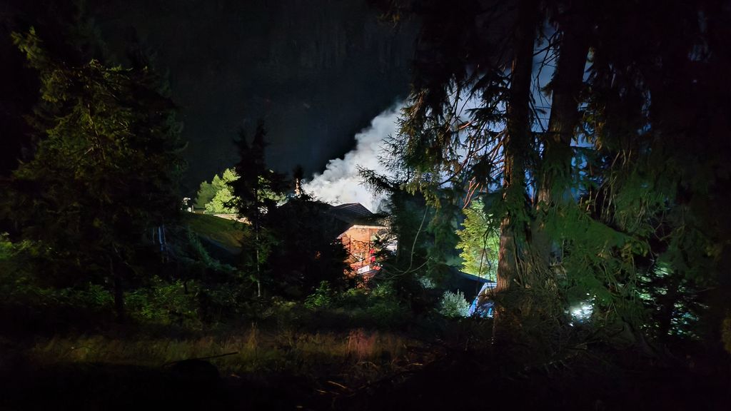 Beim Eintreffen stand das Gebäude bereits in Vollbrand. Weitere Feuerwehren des Abschnitts Oberland waren bereits mit einem umfassenden Löschangriff im Einsatz.